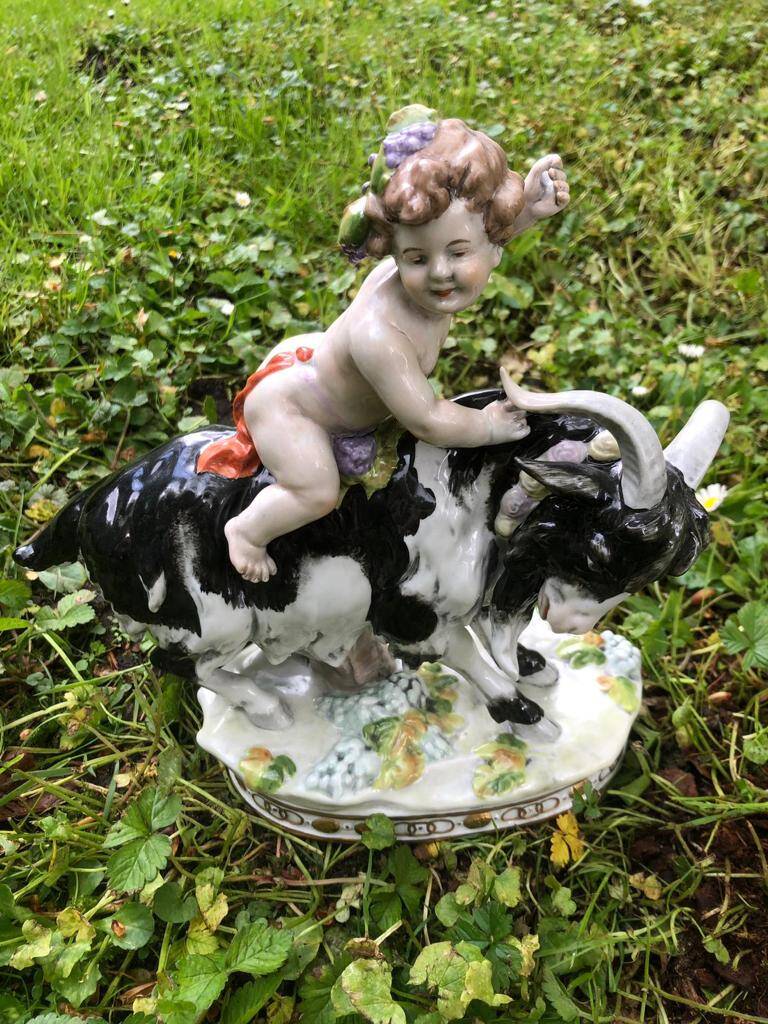 | €665.- | €920.- | 13117870 | Zittend kind op bok | 23x10x22cm | Scheibe Alsbach Duitsland | in het jaar 1835 | op voorraad |