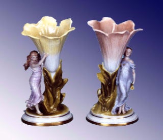 Our collection of decorative porcelain is modelled by and originates from the renowned German porcelain manufactories: Plaue Schierholz, Scheibe Alsbach, Aelteste Volkstedter, Sitzendorf, Klette, Saksische-Dresden en Rittirsch, among others.