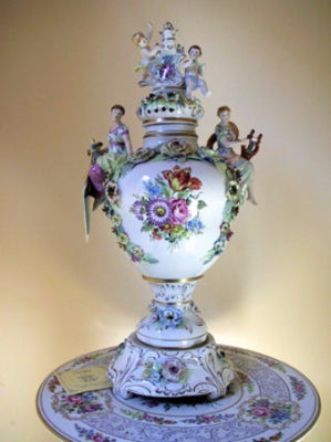 In de afgelopen 83 jaar hebben we een grote collectie opgebouwd van Saksisch- Dresden Porselein. Porselein is handgemaakt en wordt drie keer in een oven gebakken en met de hand beschilderd. Een figurenbeeld maken is hierom tijdrovend en zeer kostbaar.
